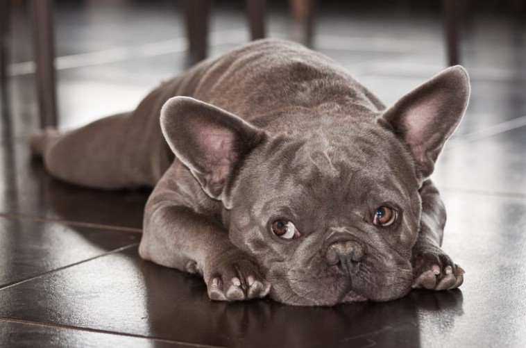 • Lying down abruptly: When your Frenchie drops to the ground without warning, especially on cool surfaces like tile or concrete, they’re attempting emergency cooling